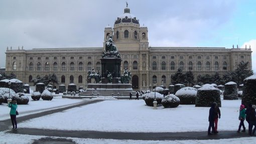 On Maria-Theresien Platz with the Empress Maria-Theresia Statue. Maria-Theresien Platz is the park between the Museum of Arts and the Museum of Natural History. The park is dominated by an enormous monument with Empress Maria-Theresia on top, surrounded by her comrades-in-arms, her Generals and advisers (in the lower section). UNESCO World Cultural Heritage Site.