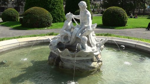 Maria Theresien Platz is the park between the Museum of Arts and the Museum of Natural History. The center of this park is dominated by an enormous monument with Empress Maria Theresia on top. This is one of the pools in the park.