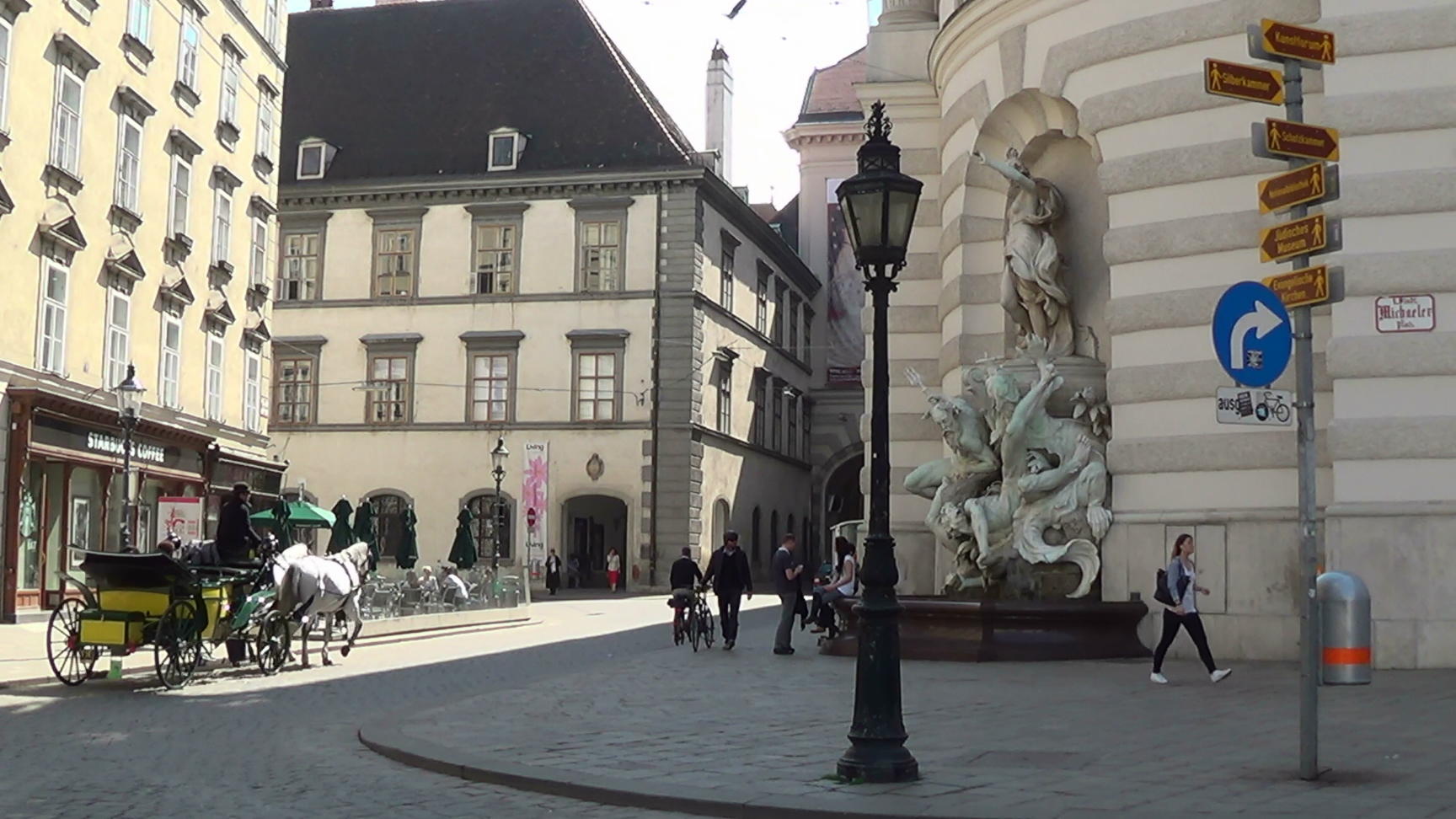 Stallburg, the building in the distance, presents the facade (ALTE HOFAPOTHEKE) where the balloon mans shadow appears in the post-war cinema movie “The Third Man“, 1949. Visit here the Third Man Museum in Vienna.