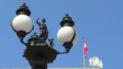 At the Parliament Building (Parlament) at the Ring Alley, next to the Town Hall (Rathaus). This is one of the street lamps on the square.