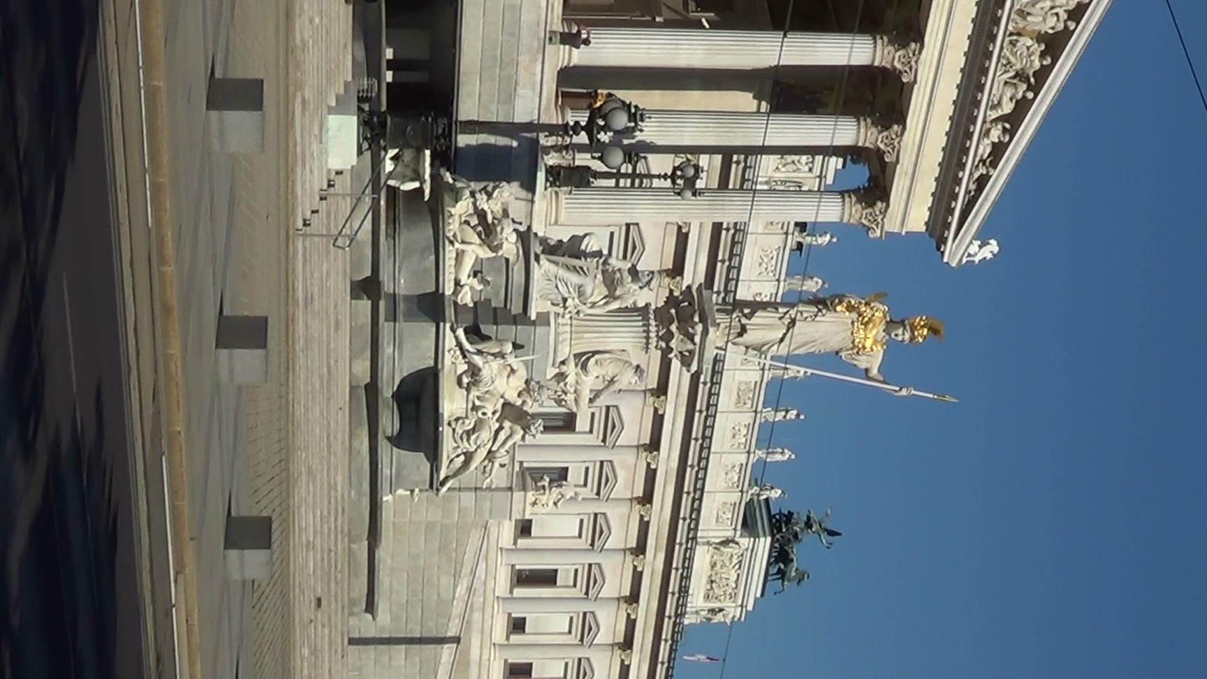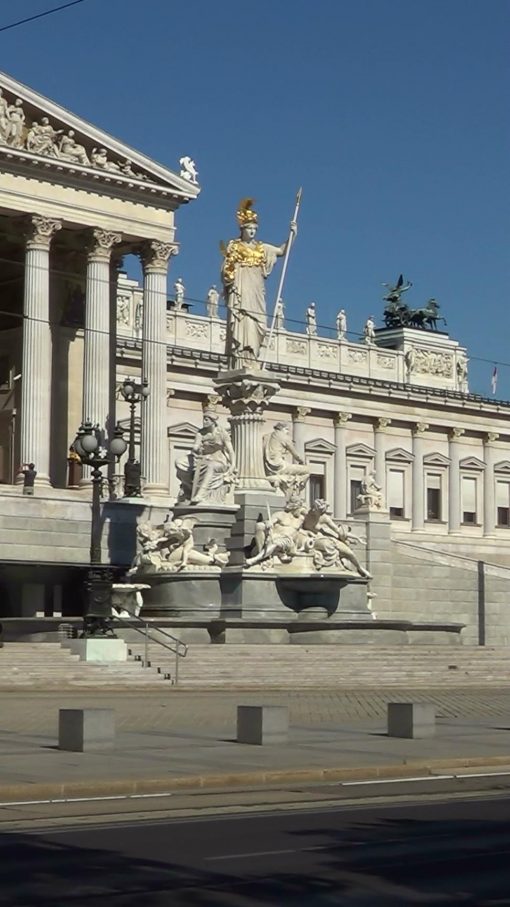 The Parliament Building (Parlament) at the Ring Alley, next to the Town Hall (Rathaus). Pallas Athene, the goddess of justice, stands in front of it. UNESCO World Cultural Heritage Site.