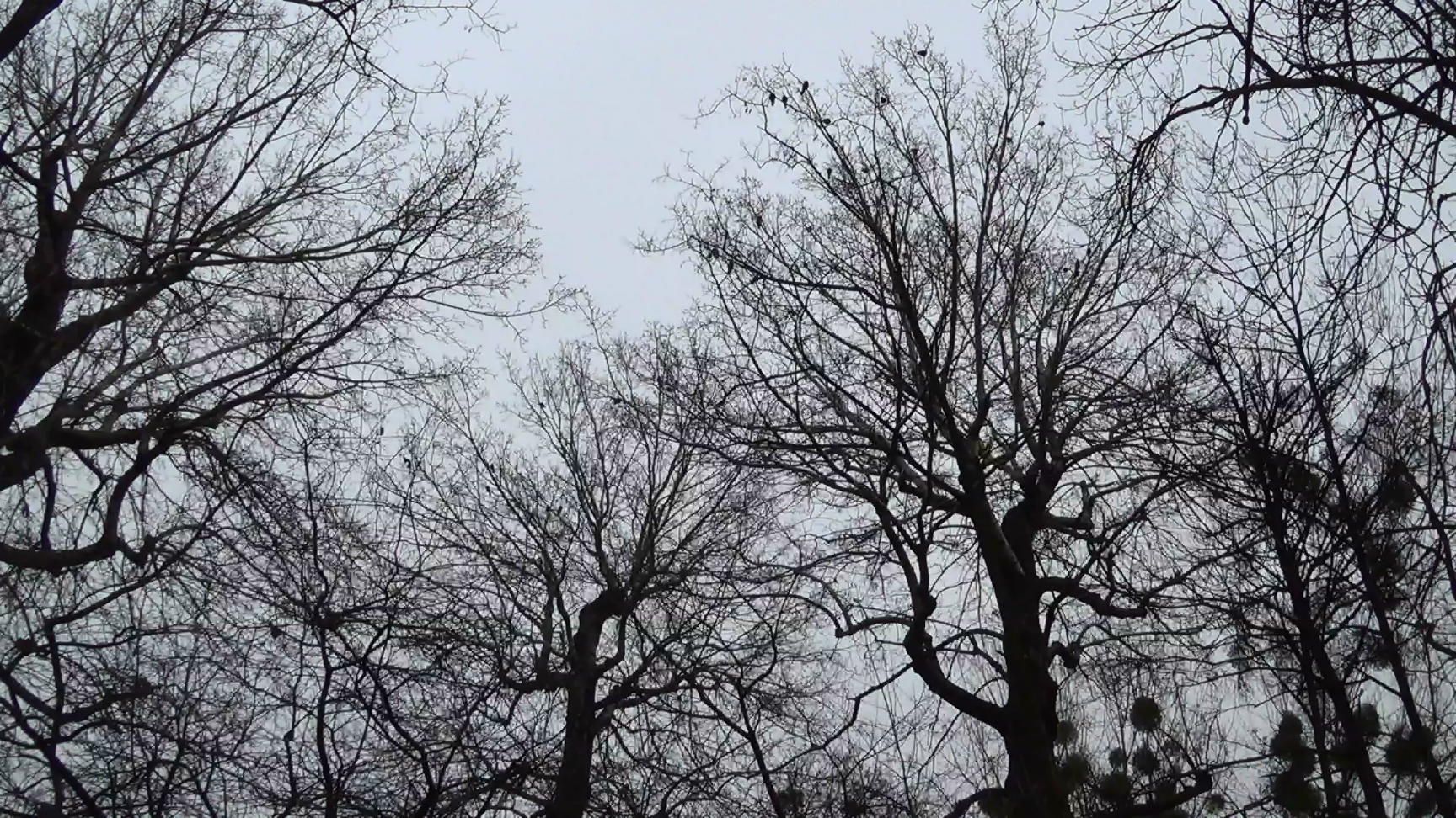 Vienna, Austria. Crows in the naked Prater trees. Few crows, rather quiet.