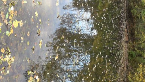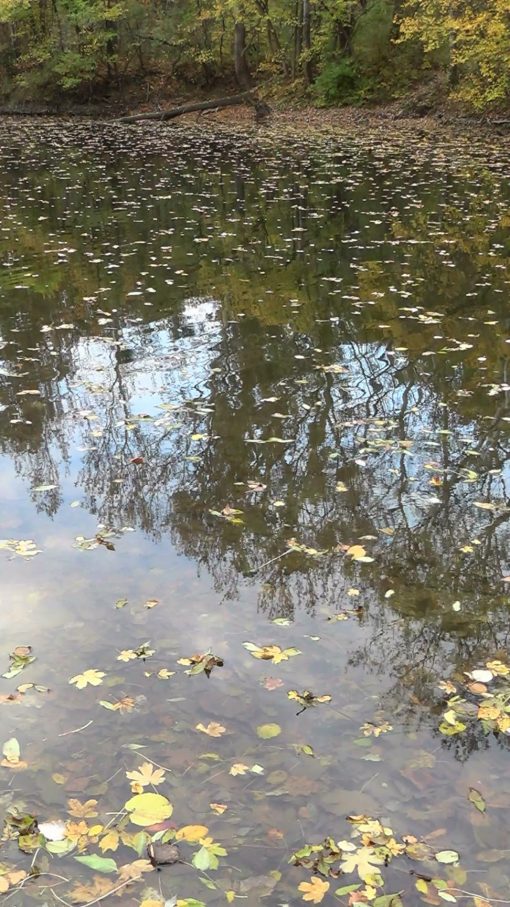 Indian summer in the Wiener Prater Forests. Slowly floating leaves on the water.