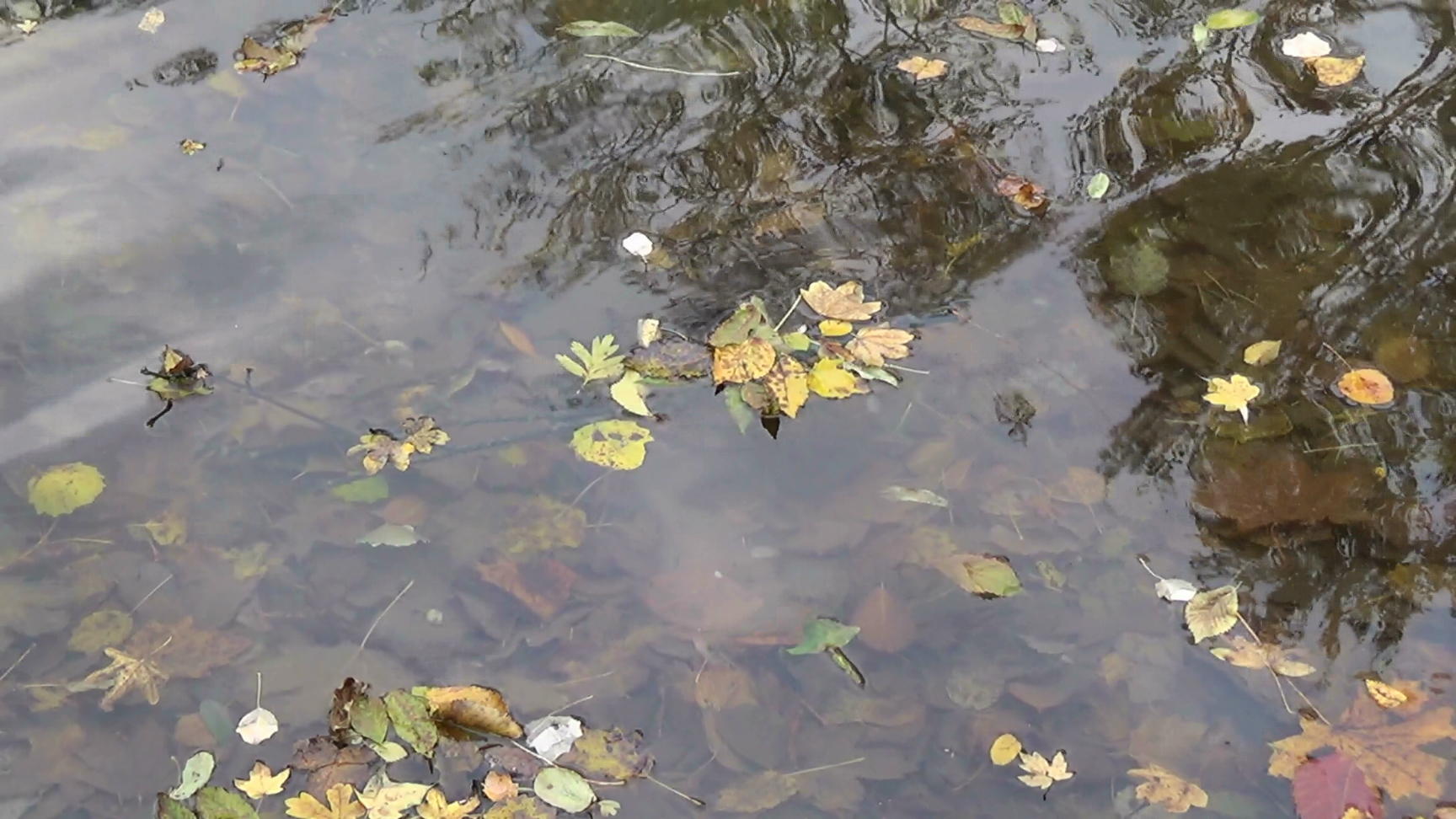 Indian summer in the Wiener Prater Forests. Slowly floating leaves on the water.