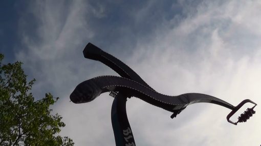 “Black Mamba”, one of the Wurstelprater (the Prater amusement park) attractions. The high frequency buzz that you hear comes from the motors.