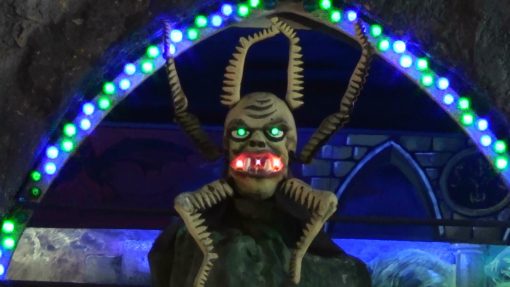 Wurstelprater, the amusement park in the Wiener Prater area. This is one of the creatures that invite for a ghost train ride.