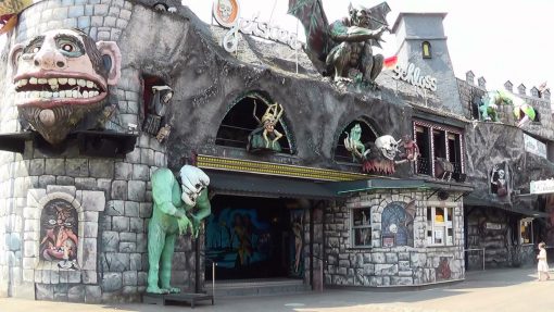 Wurstelprater, the amusement park in the Wiener Prater area. On a warm summer morning, the ghost train still sleeps.