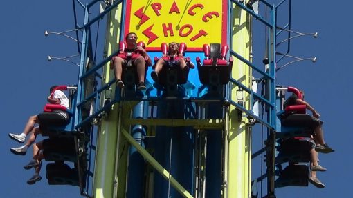 Wurstelprater, the amusement park within the Wiener Prater area. This is a combination of two parts (part 1 on the ground – smooth transition – part 2 up the mast).
