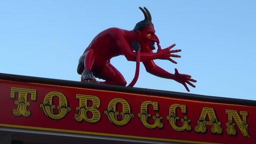 Wurstelprater, the amusement park in the Wiener Prater area. This is one of the creatures on the roof of the Toboggan slide tower attraction.