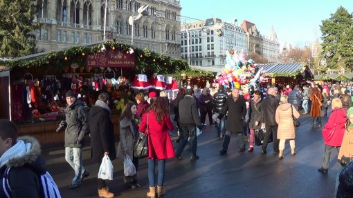 Christkindlmarkt, the traditional christmas market on Rathausplatz, the square in front of the Rathaus (Town Hall).