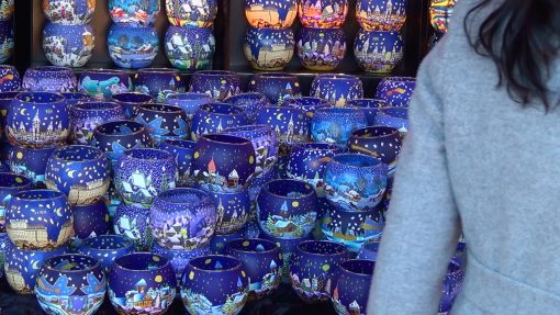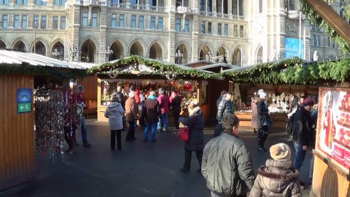 Christkindlmarkt, the traditional christmas market on Rathausplatz, the square in front of the Rathaus (Town Hall). This is one of the huts selling christmas decoration.