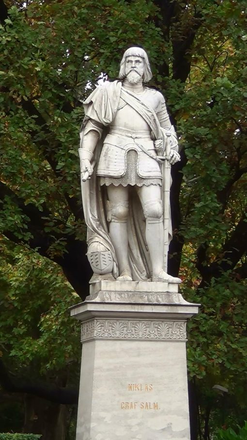 One of the statues on Rathausplatz (Town Hall Square). Earl Salm. The area is UNESCO World Cultural Heritage Site.