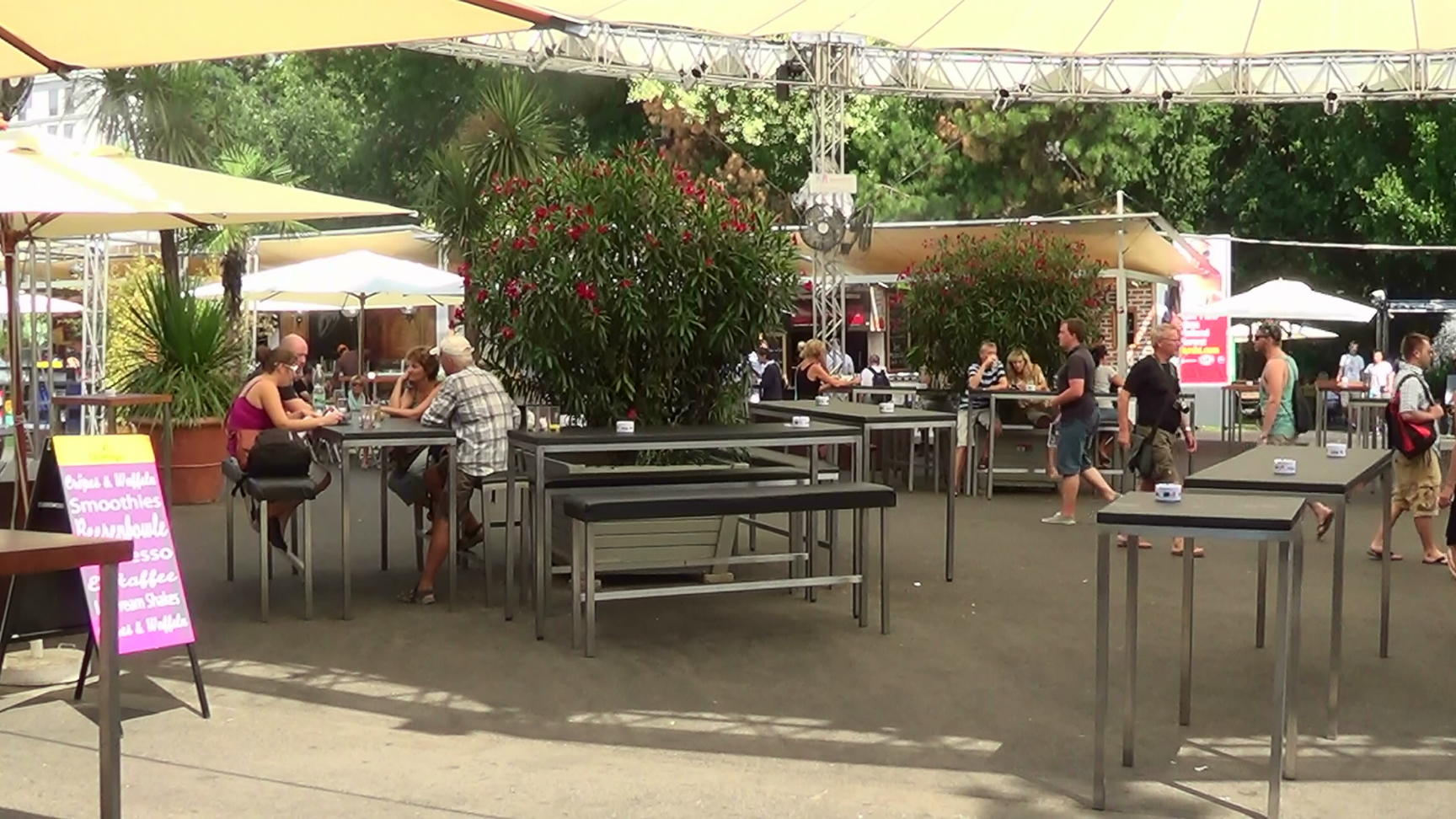 Every summer, the City of Vienna celebrates a summer festival on Rathausplatz (Town Hall Square) and in the Rathauspark, with public viewing of operas and concerts as well as a vital food court, offering a variety of specialities from different cultures. The first visitors arrive for lunch.