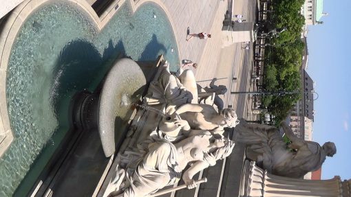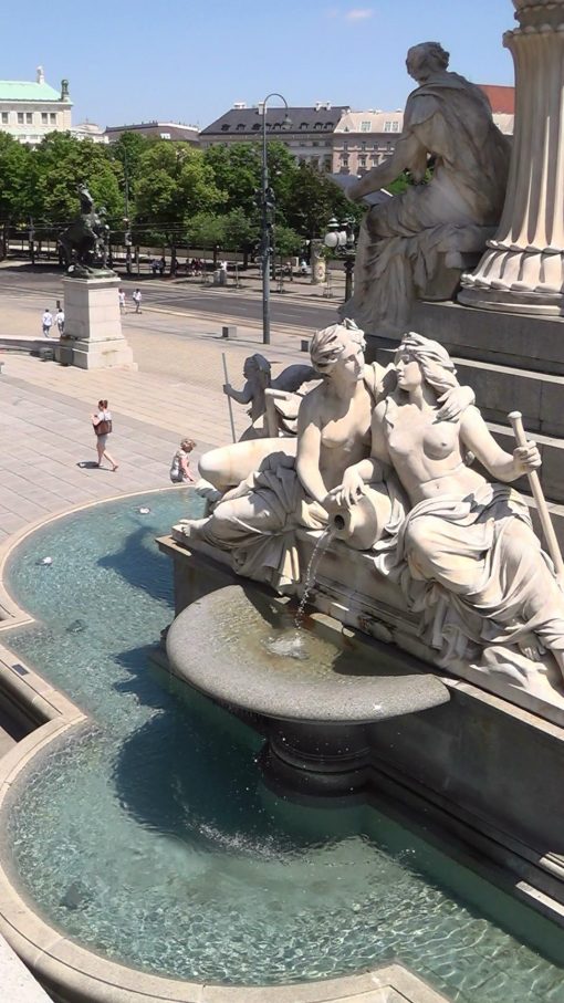 Ring Street, seen from the stairway of the Parliament Building (Parlament). Pallas Athene, the greek goddess of justice, stands in front of the building, on top of a fountain. UNESCO World Cultural Heritage Site.