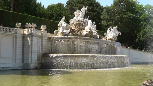 Neptune Fountain (Neptunbrunnen), the main element in the “Great Parterre”garden area, located right between the palace and the “Gloriette” up the hill.