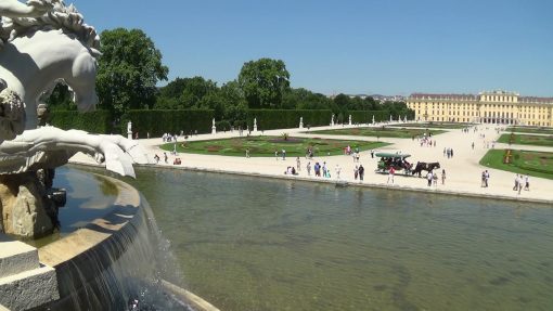 Neptune Fountain (Neptunbrunnen), the main element in the “Great Parterre”, located right between the palace and the “Gloriette” up the hill. This is a view from the fountain balustrade to the garden “Great Parterre”.