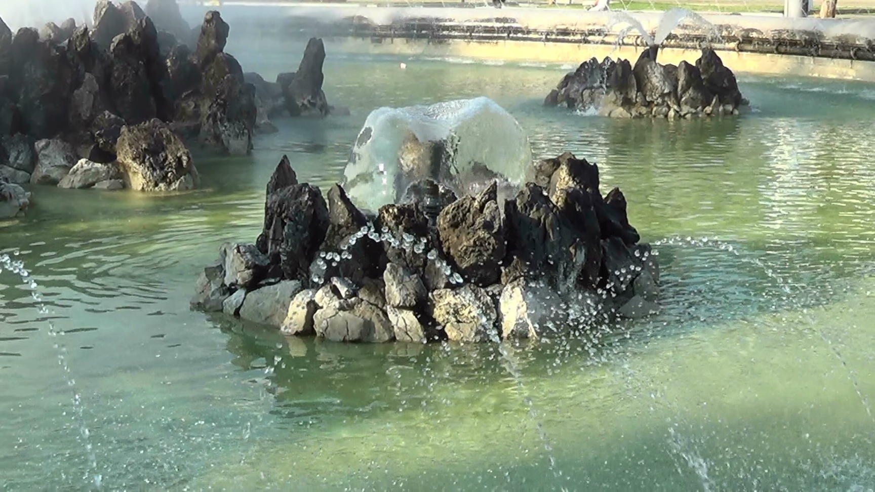 The fountain on Schwarzenbergplatz. The Russian Soldier Memorial is invisible on the right hand side, the Schwarzenberg Palais (Hotel and Congress Complex) is located behind the camera. This is a detail in the pool.