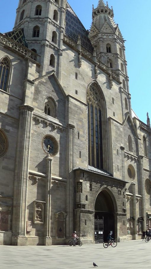 On St. Stephen’s Square in the Innere Stadt (Old Town), in front of the cathedral. UNESCO World Cultural Heritage Site. This take was recorded in the weeks of Covid-19 (Corona virus) lockdown in April 2020, on an otherwise regular workday. Few people, as offices and stores are closed.