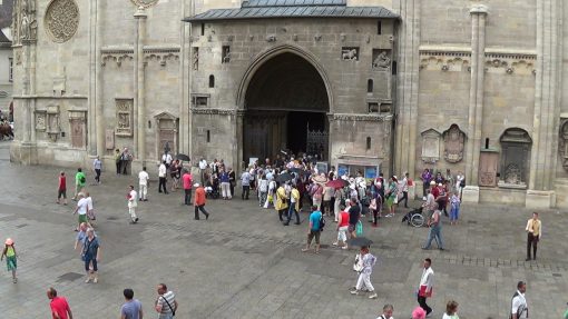 On St. Stephen’s Square in the Innere Stadt. This is the main gate (Riesentor) of the cathedral. The old town of Vienna is UNESCO World Cultural Heritage Site.