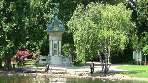 Pond and weather station at Stadtpark (City Park). This take is closer to the object than the clip no. 00431.