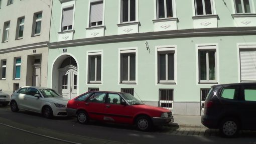 Antonigasse in the 18th district. This place was movie location for the 007 James Bond cinema movie “The Living Daylights“. The streetcar line no.9 really exists. Kara Milovy has her small apartment in the house no.92. The public phone cabin in front of the house was a mockup. This is a panorama from the left to the right.