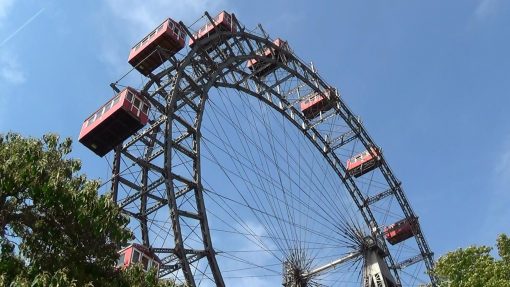 The Giant Ferris Wheel is the centerpiece of “Prater”. Prater is the name for both a large, forested recreation area as well as for a traditional amusement park.
