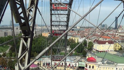 Riesenrad (The Giant Ferris Wheel) is the centerpiece of “Prater”. Prater is the name for both a large, forested Viennese recreation area as well as for an old fashioned amusement park. This is the inside of the wheel on the way up.