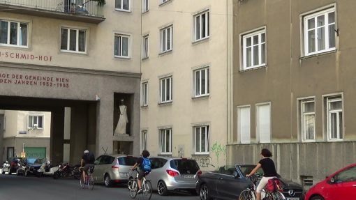 A typical municipality owned housing complex, the Anton-Schmid-Hof in the 3rd district. This is a panorama from the left to the right.