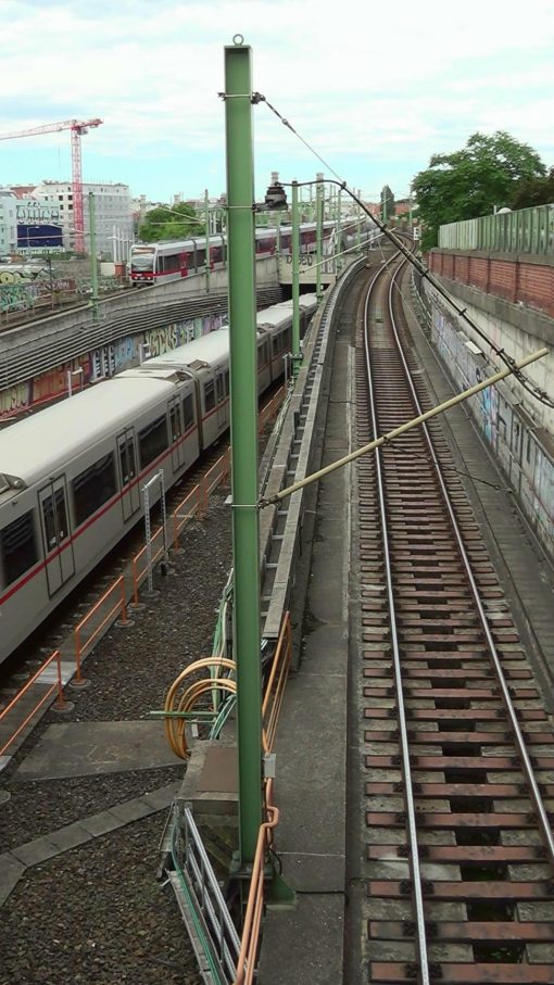 The subway lines U4 and U6 meet at the station “Längenfeldgasse”. Längenfeldgasse is half way between city center and Schönbrunn Palace.