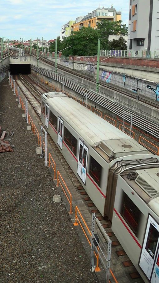 The subway lines U4 and U6 meet at the station “Längenfeldgasse”. Längenfeldgasse is half way between city center and Schönbrunn Palace.