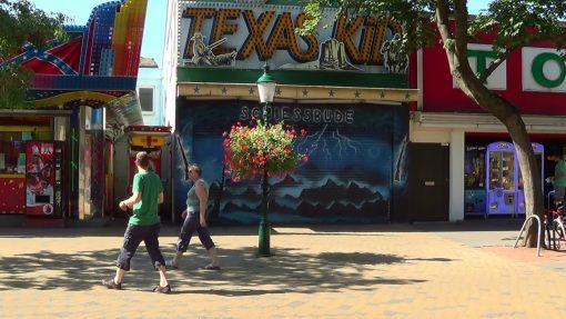 Wurstelprater, the amusement park in the Wiener Prater area. On a summer morning, the first attractions are about to open.