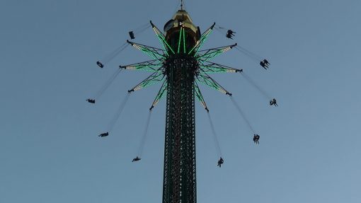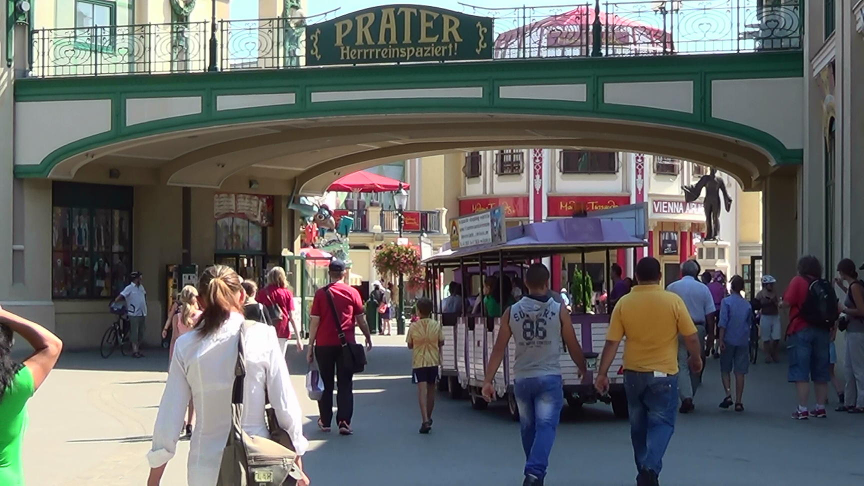 Wurstelprater, the amusement park in the Wiener Prater area. This is the main gate, right next to the Giant Ferris Wheel (Riesenrad).