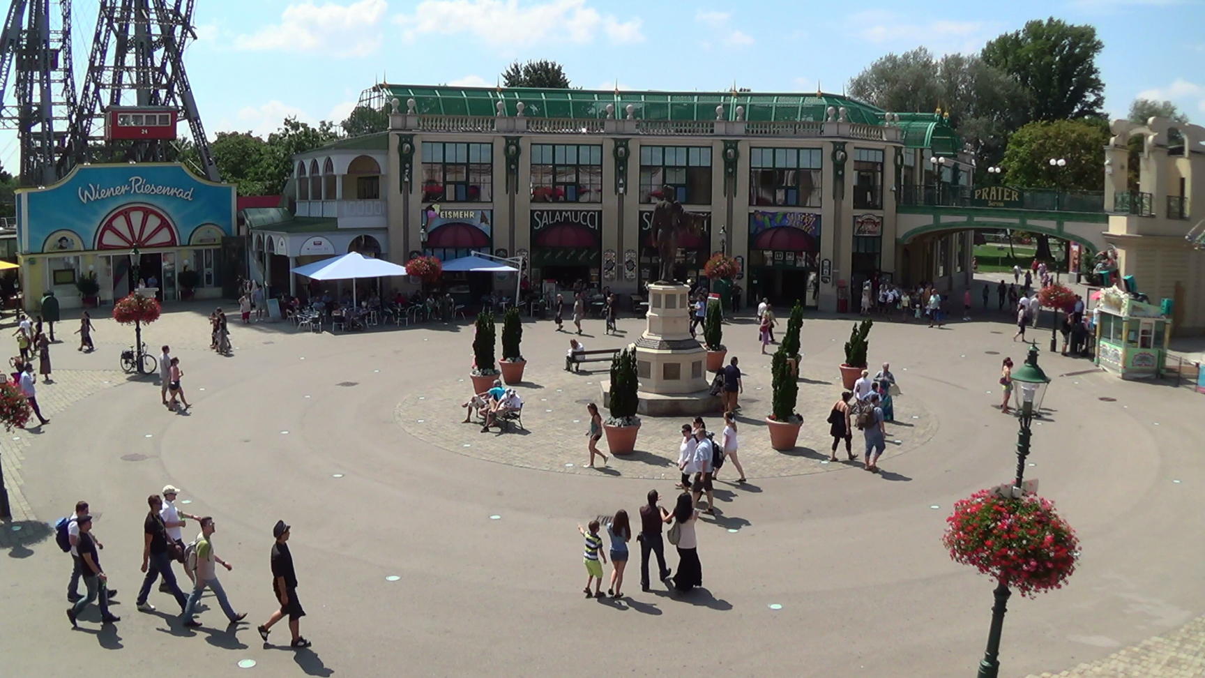Celine and Jesse (Julie Delpy, Ethan Hawke) have their night stroll around here in the cinema movie Before Sunrise and kiss for the first time in one of the gondolas of the Giant Ferris Wheel.