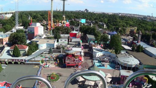 Overview over the central area of Wurstelprater, the traditional amusement park in the Wiener Prater area.