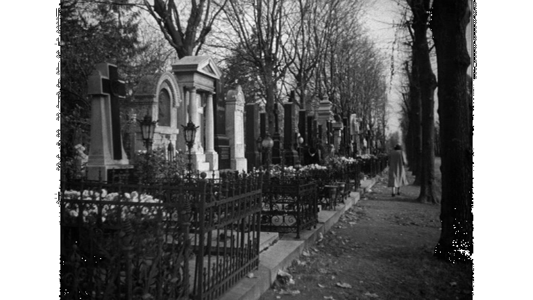 At the time of my visit in spring 2020, many of the tombstones (hence the graves) still exist. The most significant are the tombstone with the two black columns and the white tall stone that shows an angel, his head bent forward. The angel stone is visible in 3 takes (After several watchings and comparison, the current stone seems to be a new one. The elbows rest differently today, the head on film seems to have hair or wear a shawl, and the current sculpture doesnt show a trace of weathering). Also the obelisk at the northern end of the street still exists.