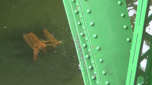 Zollamtbrücke is a small steel bridge for pedestrians to cross the shallow Wien river and the subway line U4.