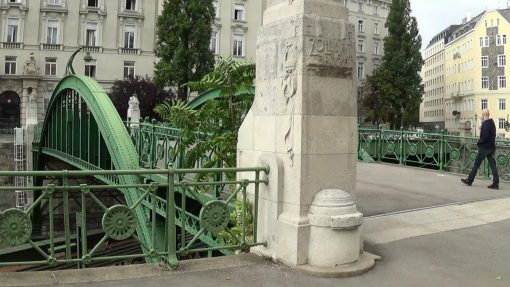 Zollamtbrücke is a small steel bridge for pedestrians to cross the shallow Wien river and the subway line U4.