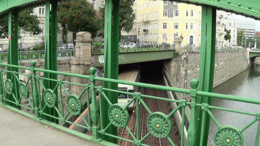 Zollamtbrücke is a small steel bridge for pedestrians to cross the shallow Wien river and the subway line U4.