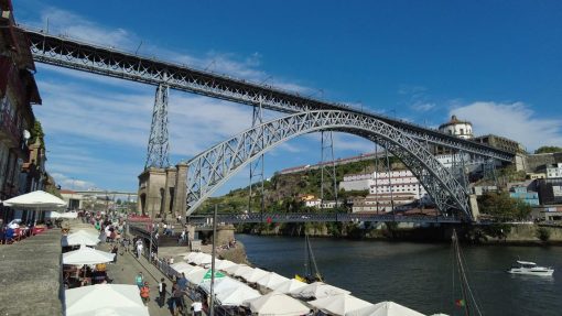 Ribeira, Vila Nova de Gaia, the Douro river and the Dom Luis 1 bridge. The bridge is UNESCO World Cultural Heritage Site.