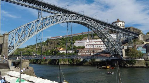 Ribeira, Vila Nova de Gaia, the Douro river and the Dom Luis 1 bridge. The bridge is UNESCO World Cultural Heritage Site.