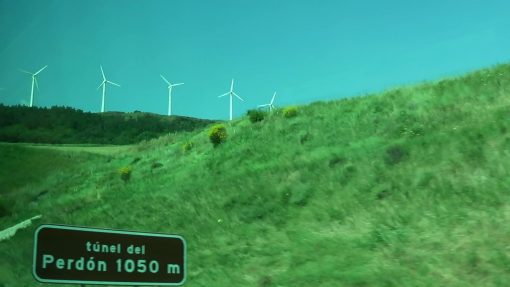 Alto de Perdon (“Peak of Forgiveness”) on the Camino de Santiago, between Pamplona and Puente la Reina. This 3-parts-combination shows the ridge seen from the freeway A12, before the tunnel and after. Smooth transitions. The Camino de Santiago is UNESCO World Cultural Heritage.
