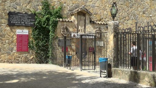 On the Camino de Santiago (St. James Trail). Bodegas Irache Winery, right after Estella, run a water and wine fountain on one of their outer walls. This is a panorama from the left to the right, from the proceeding pilgrims over to the wine fountain. The “Way of St. James” is UNESCO World Cultural Heritage Site.