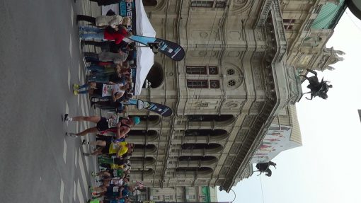 Runners on Ring Street, the broad alley that encircles the old town. In the background the State Opera House (Staatsoper). UNESCO World Cultural Heritage Site.