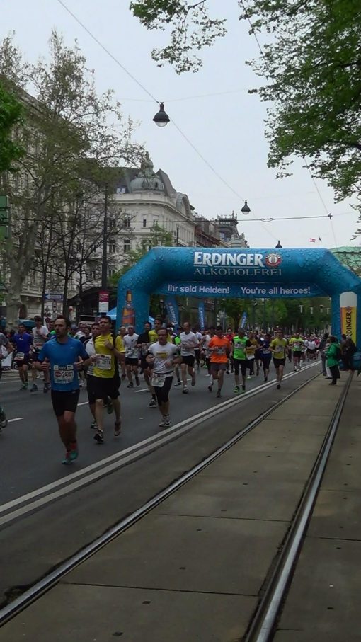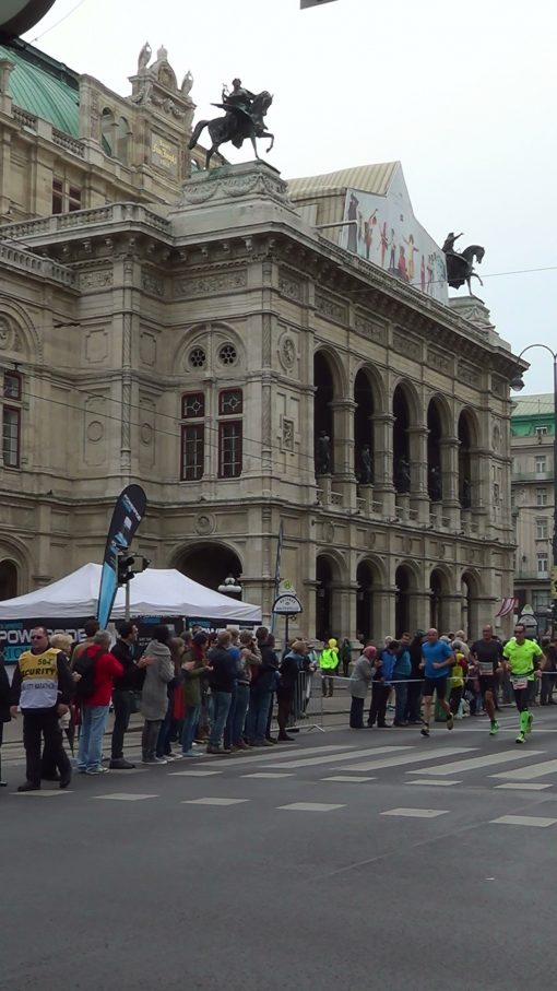 Runners on Ring Street, the broad one way alley that encircles the old town.