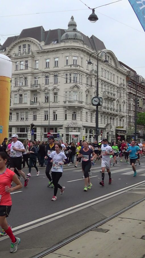 Runners on Ring Street, the broad alley that encircles the old town. Luegerplatz (Lueger Square) and the traditional Cafe Prückel in the background.