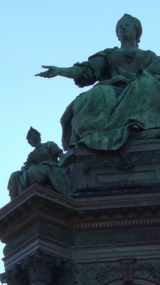 Maria Theresien Square with Empress Maria Theresia Statue. Maria Theresien Platz is the park between the Museum of Arts and the Museum of natural History. The center of this park is dominated by an enormous monument with Empress Maria Theresia on top, surrounded by her comrades-in-arms, her Generals and advisers (in the lower section).