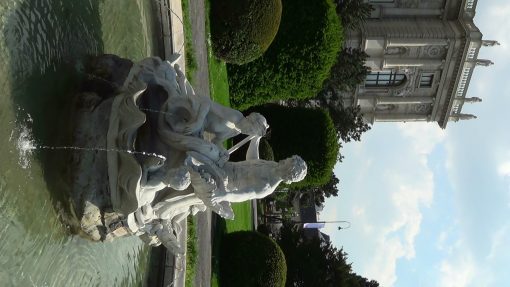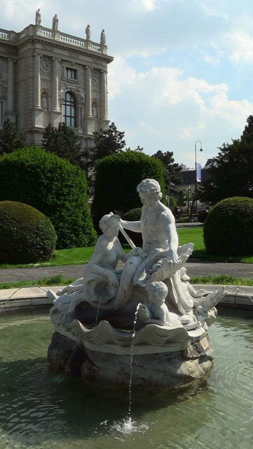 Maria Theresien Platz is the park between the Museum of Arts and the Museum of Natural History. The center of this park is dominated by an enormous monument with Empress Maria Theresia on top. This is one of the pools in the park. UNESCO World Cultural Heritage Site.