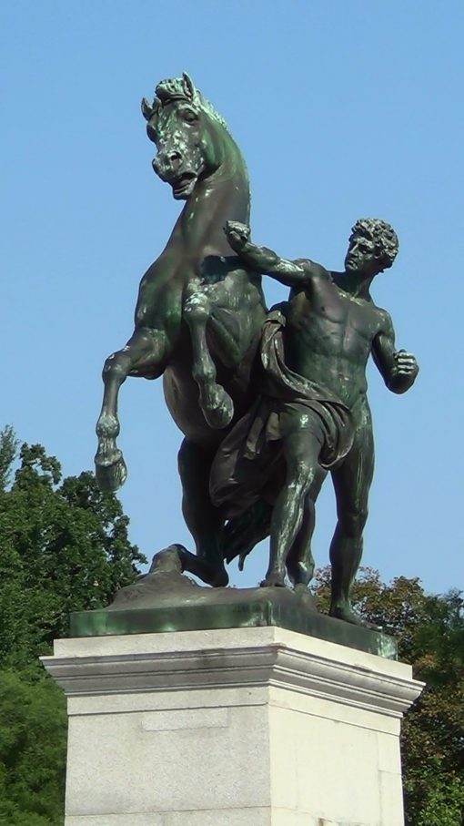 In front of the Parliament Building (Parlament) at the Ring Alley, next to the Town Hall (Rathaus). This is one of the sculptures at the ramp, a horse taming boy.