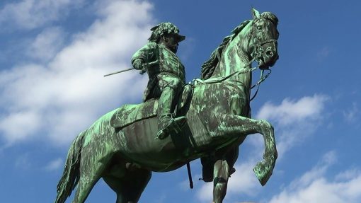 Jesse and Celine (Ethan Hawke, Julie Delpy) sit on the steps of this statue in the cinema movie “Before Sunrise“.
